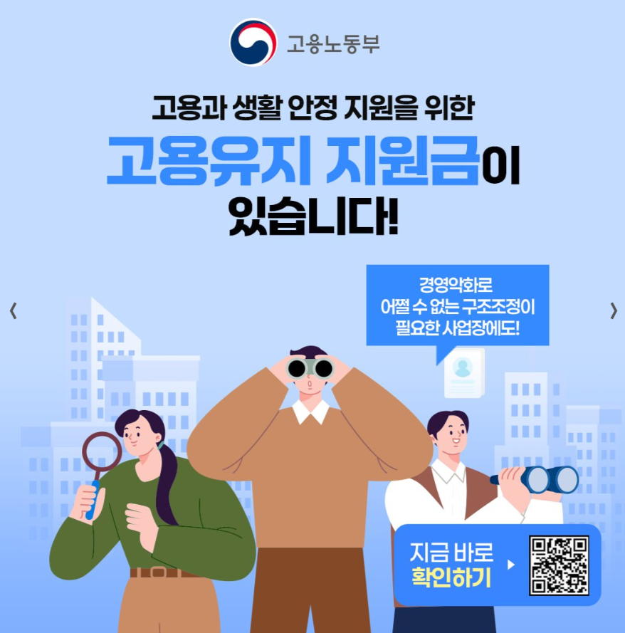 정부는 이러한 경영상 어려움 속에서도 기업이 근로자를 해고하지 않고 고용을 유지할 수 있도록 돕기 위해 '고용유지지원금'이라는 제도를 운영하고 있습니다. 이 제도는 사업주가 근로자에게 휴업이나 휴직 등의 조치를 시행할 경우, 그에 따른 인건비의 일부를 정부가 지원해 주는 방식입니다. 핵심은 해고 없이 위기를 넘기자는 것입니다. 인재는 기업의 가장 중요한 자산이기 때문에, 인력을 유지하면서 위기를 돌파하는 방향으로 유도하는 제도라 할 수 있습니다.