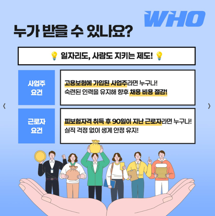 고용유지지원금은 고용보험에 가입된 모든 사업주가 신청할 수 있으며, 해당 사업장에서 고용된 근로자가 피보험 자격을 취득한 지 90일이 지난 경우 지원 대상에 포함됩니다. 여기서 말하는 근로자는 정규직뿐만 아니라 계약직, 파트타임, 시간제 등 고용형태에 관계없이 포함되며, 사업주 본인은 대상에서 제외됩니다.
