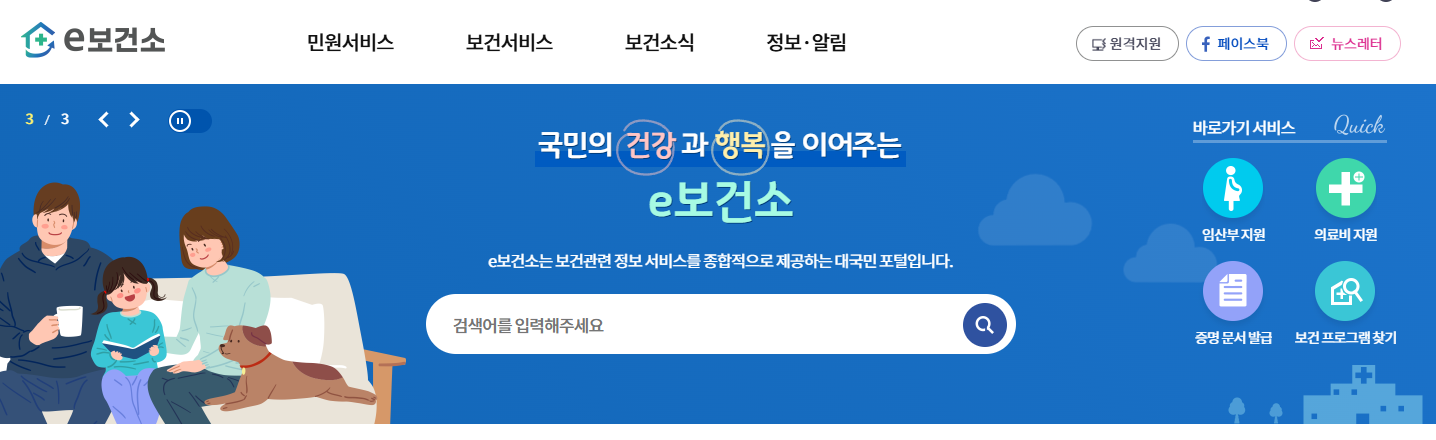보건복지부와 한국사회보장정보원이 운영하는 온라인민원 서비스,건강진단결과서(구 보건증) 등 제증명 발급, 의료비지원 등 안내
