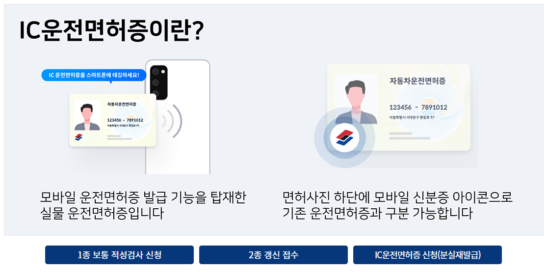 모바일 운전면허증을 발급받으려면 IC칩이 내장된 운전면허증으로 교체해야 합니다.