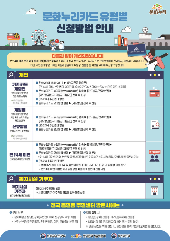 문화누리카드 홈페이지에서 온라인 신청 가능