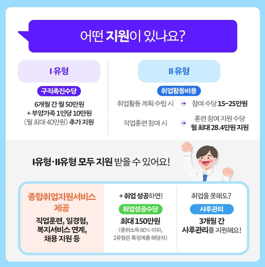 생계가 어려운 구직자에게는 일정 기간 동안의 금전적 지원을 제공하여 생활을 안정시키고, 동시에 취업 교육과 일자리 매칭을 통해 구직 활동을 촉진합니다. 또한, 개별 맞춤형 상담과 컨설팅을 제공하여 개인의 역량을 강화하고, 보다 안정적이고 지속 가능한 직업을 찾을 수 있도록 돕습니다.