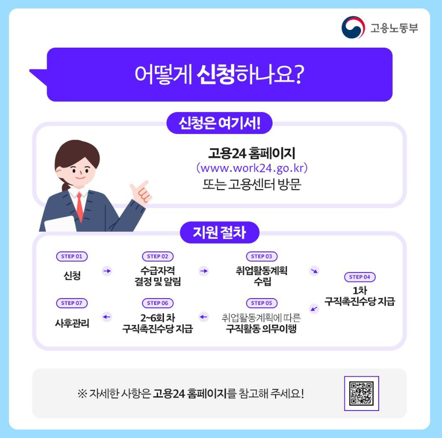 고용센터 방문을 통해 오프라인으로도 신청할 수 있으며, 과정은 다음과 같습니다.