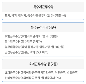 - 시간 외 근무 상한 확대: 공무원들의 초과근무 보상을 강화하기 위해 시간 외 근무 상한을 월 100시간으로 확대합니다.