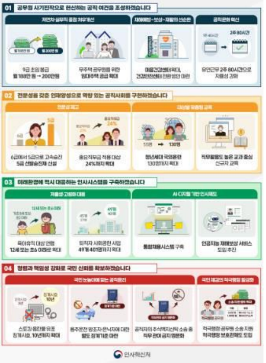 정부는 저연차 및 실무직 공무원의 처우를 개선하고, 공직사회 전반의 근무 환경을 혁신하기 위한 다양한 정책을 추진하고 있습니다.