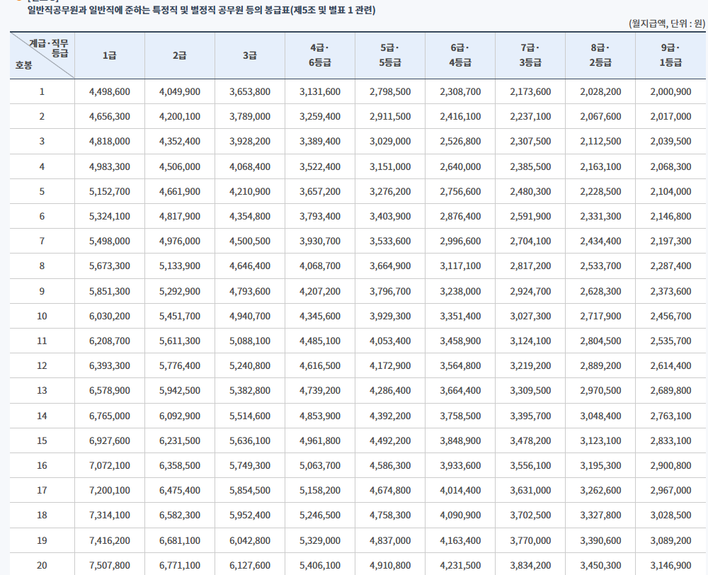 또한, 호봉이 상승할수록 급여도 점진적으로 증가하는 구조를 유지함으로써 장기근속 공무원에게 안정적인 보상을 제공합니다. 이번 봉급 인상은 공직자의 사기를 높이고, 우수한 인재를 공직에 유치하는 데 긍정적인 영향을 미칠 것으로 보입니다.