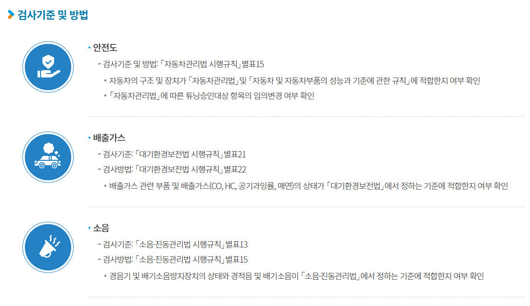 배출가스, 소음, 제동력 등의 필수 항목 측정