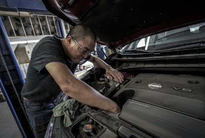 검사원이 차량 점검 및 성능 테스트 진행