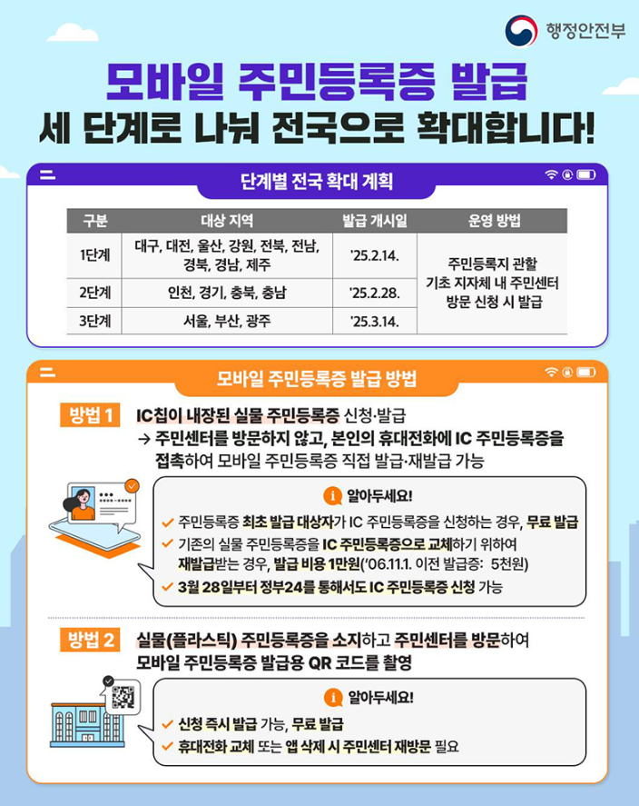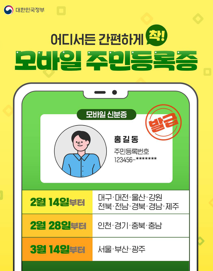 모바일 주민등록증은 2025년 2월 14일부터 3단계에 걸쳐 전국적으로 확대 시행됩니다.