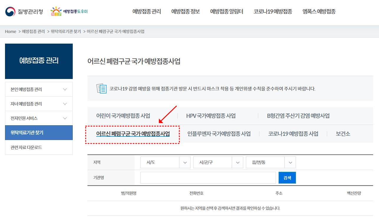 국가 예방접종 위탁의료기관 찾기 어린이 국가예방접종 사업 HPV 국가예방접종 사업 B형간염 주산기 감염 예방사업 어르신 폐렴구균 국가 예방접종사업 인플루엔자 국가예방접종 사업 코로나19