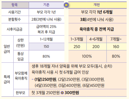 육아휴직 급여 인상 (최대 월 250만 원)