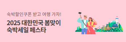 2025 대한민국 봄맞이 숙박 세일 페스타가 시작됩니다! 따뜻한 봄을 맞아 여행을 계획하고 있다면 이번 할인 행사를 적극 활용해 보세요.